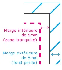 La coupe ayant une marge d'erreur de l'ordre d'un millimètre, il est important de prévoir des marges intérieures (zone de sécurité) et extérieures (fonds perdus) à votre document.