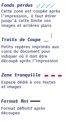 - La zone tranquille permet de préserver les information textuelles (mentions obligatoires, logos, etc..) lors de la coupe.