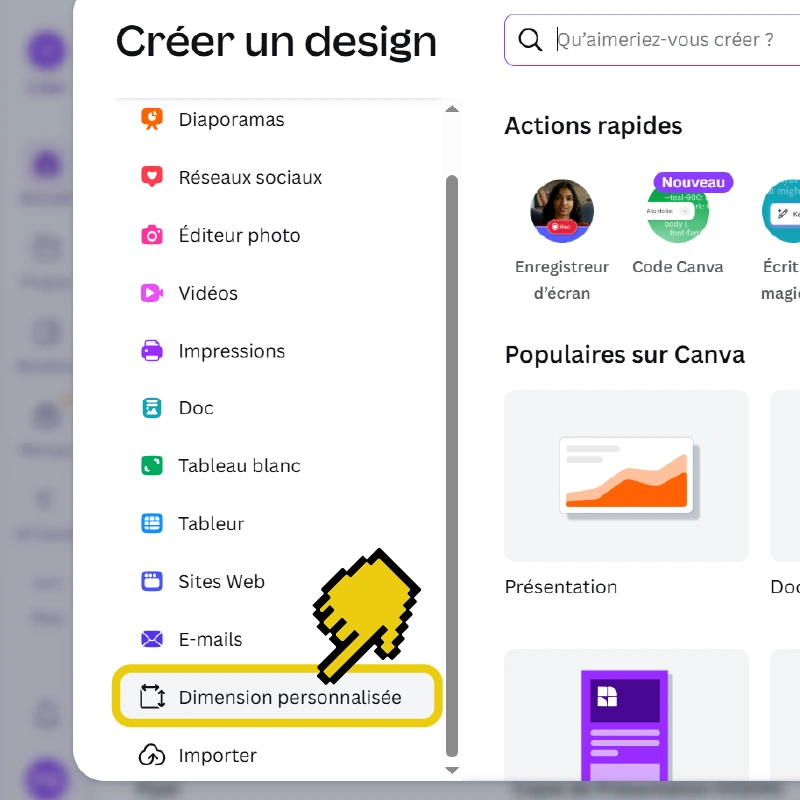 Canva vous incite à utiliser des Modèles pré-conçues, mais ceux-ci ne sont pas forcément conformes pour l'impression ! Si vous avez accès à une souscription "Canva Pro", pas de problème : vous pourrez redimensionner un Modèle existant. Si vous ne souhaitez utiliser que les fonctionnalités gratuites, il vaut mieux démarrer sur de bonnes bases pour ne pas se retrouver coincé.