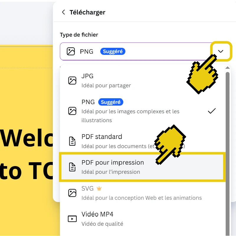 - Dans le Menu déroulant, sélectionnez PDF pour impression.